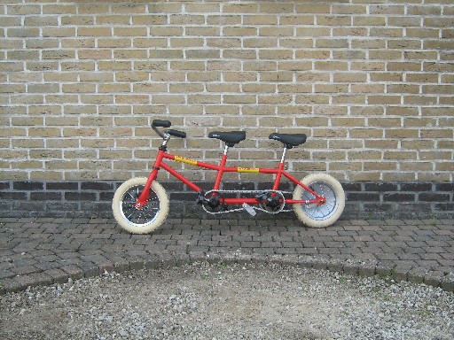 De mini tandem rijdt zoals een gewone tandem, maar is veel kleiner. Voor kinderen en/of volwassen